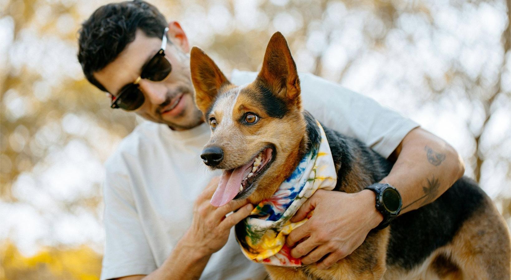 • a person holding a dog
