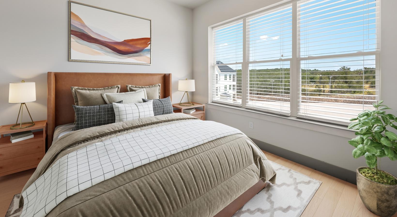 • a bedroom with a large bed and a window